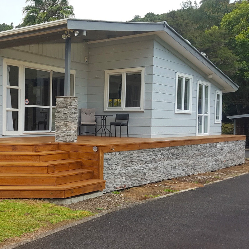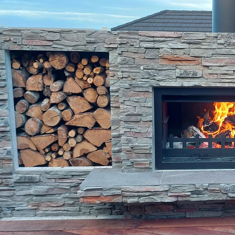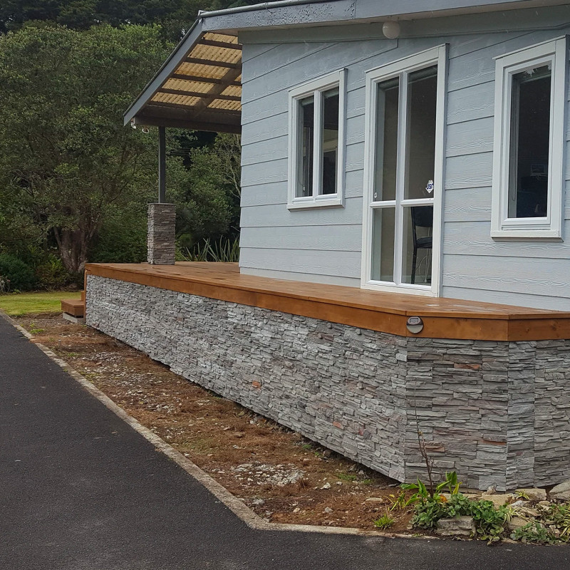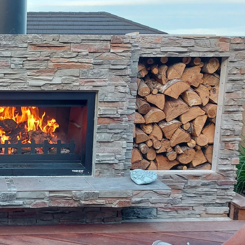 We have significantly improved our BBQ area by using our Alpine Schist – Mix. Before it used to be a rubbish bin area that was too spacious and cosy for two rubbish bins, so we decided to give it a good clean, a little bit of paint and a feature with the schist stone – the result became more than just impressive.