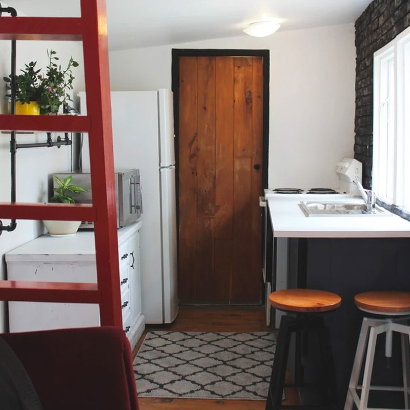 Bricks’ texture adds a little bit of “history” to my tiny house and since they are made of concrete – I am not worried about its durability.